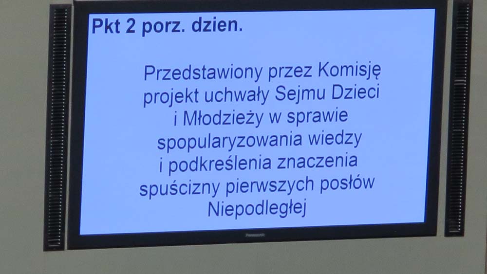 W kolejnej części posiedzenia porządek obrad przewidywał pytania do ministra edukacji narodowej przygotowane przez młodzieżową Komisję sejmową, projekt Uchwały Sejmu Dzieci i Młodzieży w sprawie spopularyzowania wiedzy i podkreślenia znaczenia spuścizny pierwszych posłów Niepodległej oraz dyskusję nad tym projektem. W sprawie przyjęcia Uchwały po uwzględnieniu poprawek głosowało 441 posłów: za przyjęciem było 306 głosów, przeciw ─ 83 głosy, 52 posłów wstrzymało się od głosu. Projekt Uchwały został przyjęty na XXV Sesji SDiM.
