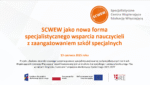 Agnieszka Pietryka, kierowniczka projektu „Budowa skoordynowanego systemu pomocy specjalistycznej opartego na SCWEW”, realizowanego przez ORE na zlecenie MEN, przedstawiła założenia projektu oraz wskazała na nowatorskie podejście do wspierania nauczycieli poprzez wykorzystanie potencjału szkół specjalnych. W swoim wystąpieniu zaprezentowała SCWEW jako nową formę specjalistycznego wsparcia. Podkreśliła też ciągłość realizacji tego przedsięwzięcia i ważność wprowadzania zmiany wynikających z nabywania doświadczenia, a także zmian systemowych.