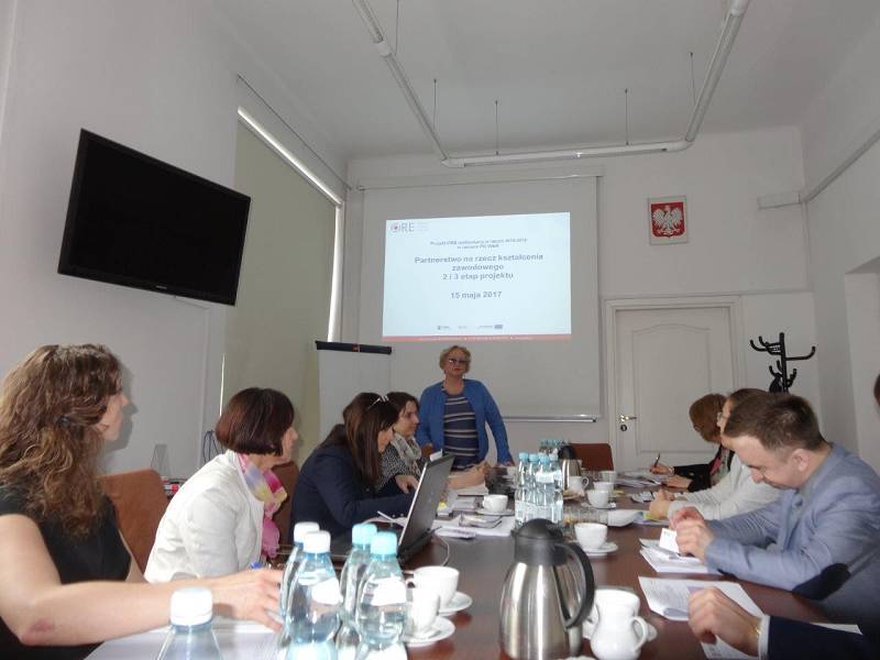 W dniach 15 i 16 maja 2017 r. w Ośrodku Rozwoju Edukacji odbyły się spotkania dyrekcji ORE i przedstawicieli projektu „Partnerstwo na rzecz kształcenia zawodowego” (etap 2. i 3.) z przedstawicielami departamentów ministerstw właściwych dla zawodów i z Departamentu Kształcenia Zawodowego i Ustawicznego Ministerstwa Edukacji Narodowej.
