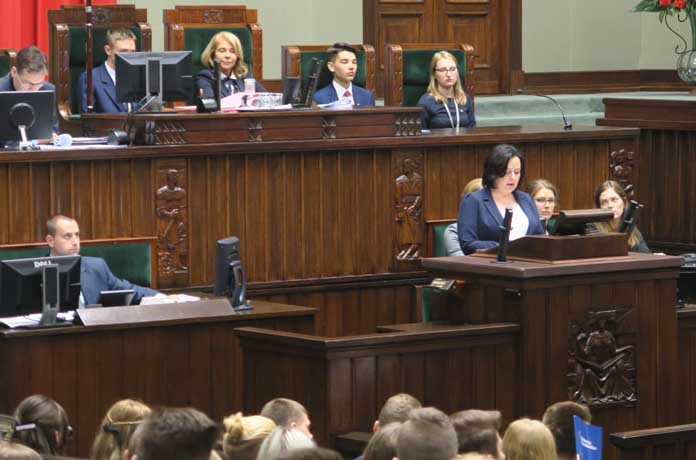 Barbara Rudzińska-Mękal przypomniała także o misji Ośrodka, którą jest przygotowanie nauczycieli do tego, aby w codziennej pracy mogli przekazywać młodzieży wartości pozwalające na życie w prawdzie, szacunku do drugiego człowieka, do historii i tradycji. O tym, jak ważna jest przeszłość i przyszłość, oraz o roli edukacji mówili do uczniów – posłów także: wiceminister edukacji Marzena Machałek, rzecznik praw dziecka Marek Michalak i prezes Instytutu Pamięci Narodowej Jarosław Szarek.