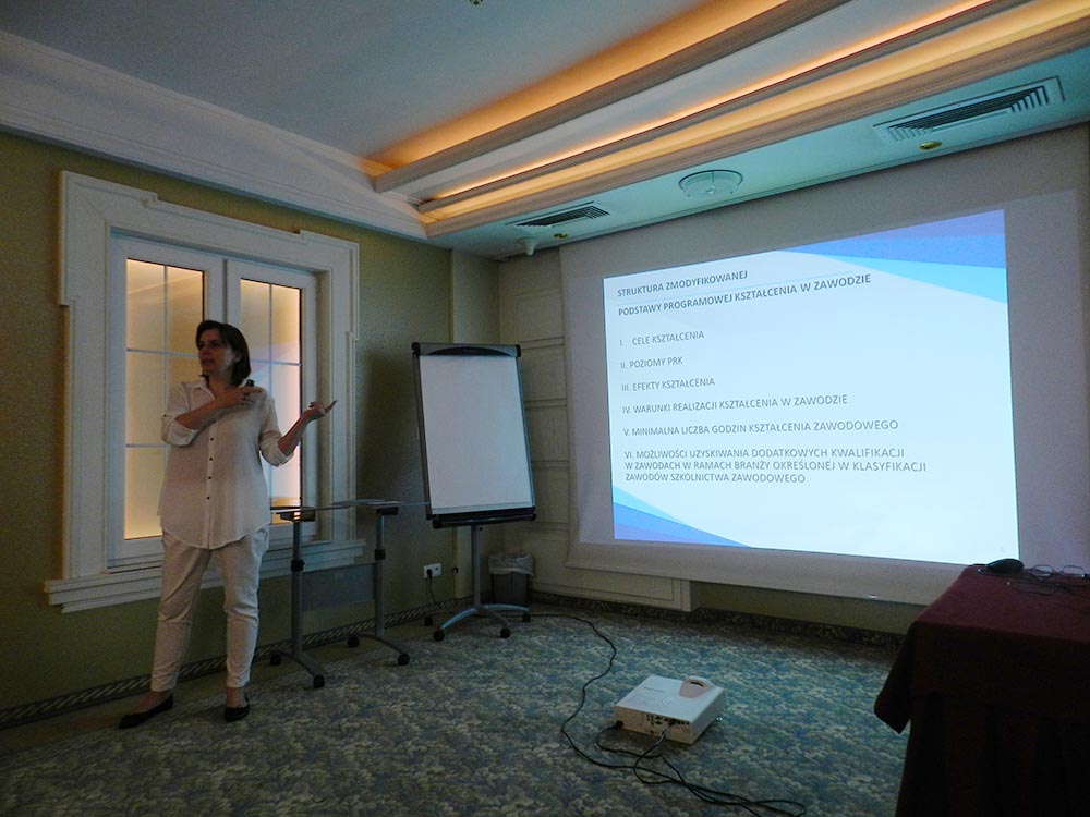 Uczestników spotkania powitała Urszula Blicharz, która zaprezentowała cele i założenia etapu 3. projektu „Partnerstwo”. Następnie wystąpiła Emilia Maciejewska, Naczelnik Wydziału Kształcenia Zawodowego Departamentu Kształcenia Zawodowego i Ustawicznego w Ministerstwie Edukacji Narodowej, która szczegółowo omówiła zmiany w podstawie programowej oraz w metodologii modyfikacji podstawy programowej kształcenia w zawodach. Podkreśliła, że kształcenie zawodowe w polskiej szkole powinno umożliwić absolwentom osiągnięcie sukcesu zawodowego na rynku pracy.