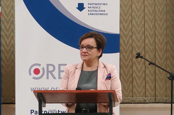 Zachęcała wszystkich pracodawców do współpracy przy tworzeniu podstawy programowej kształcenia w zawodach dostosowanej do potrzeb rynku pracy. Podkreśliła, jak ważnym ogniwem w systemie edukacji zawodowej są właśnie pracodawcy, którzy wspólnie ze szkołą mogą kształtować umiejętności praktyczne uczniów związane z danym zawodem. Pani Minister zachęciła uczestników seminarium do dyskusji o zmianach w edukacji zawodowej, aby była ona spójna z rozwijającą się gospodarką kraju.