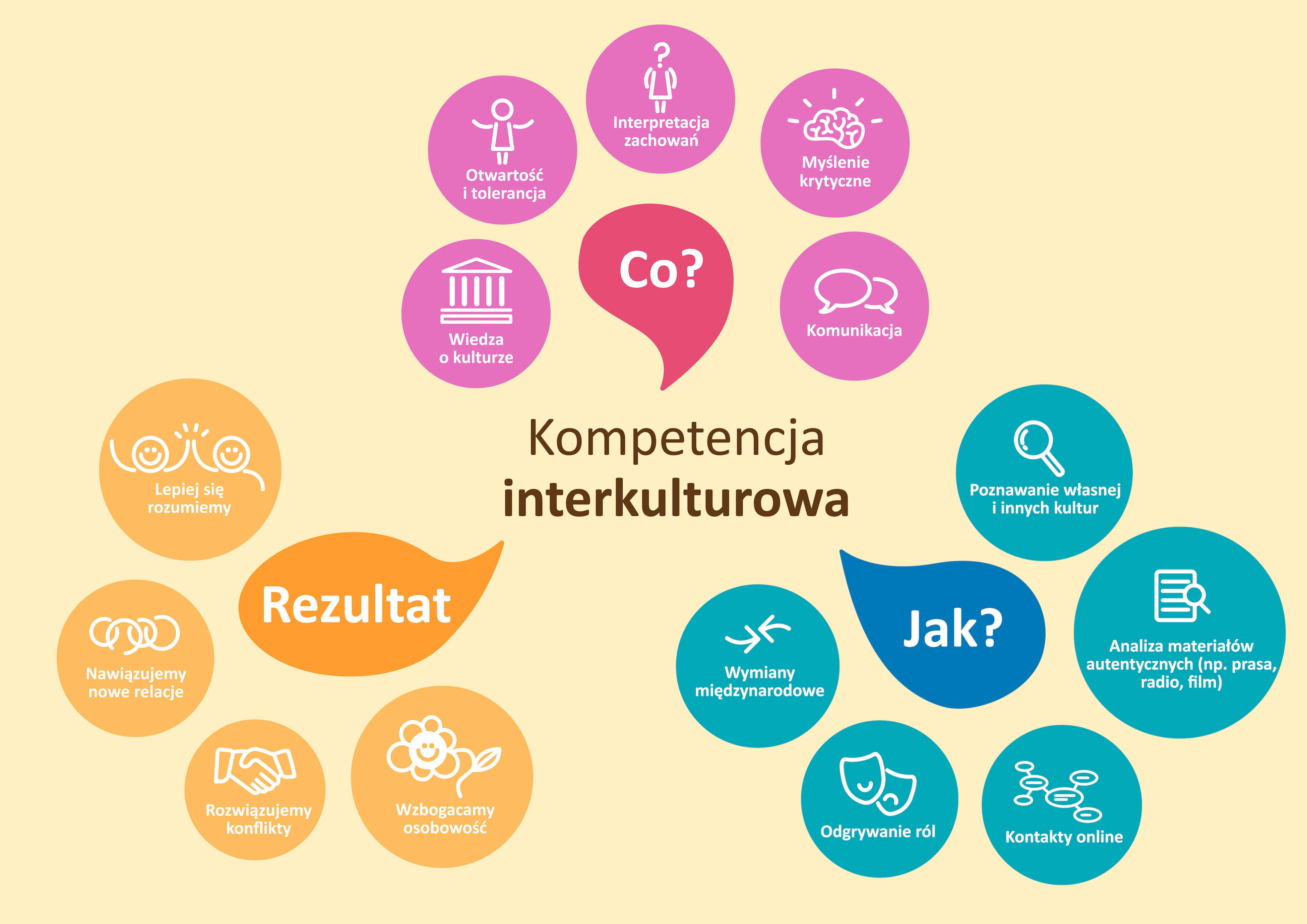 Zestaw odpowiada na pytania czym jest kompetencja interkulturowa i w jaki sposób rozwijać ją u uczniów na lekcji języka obcego.