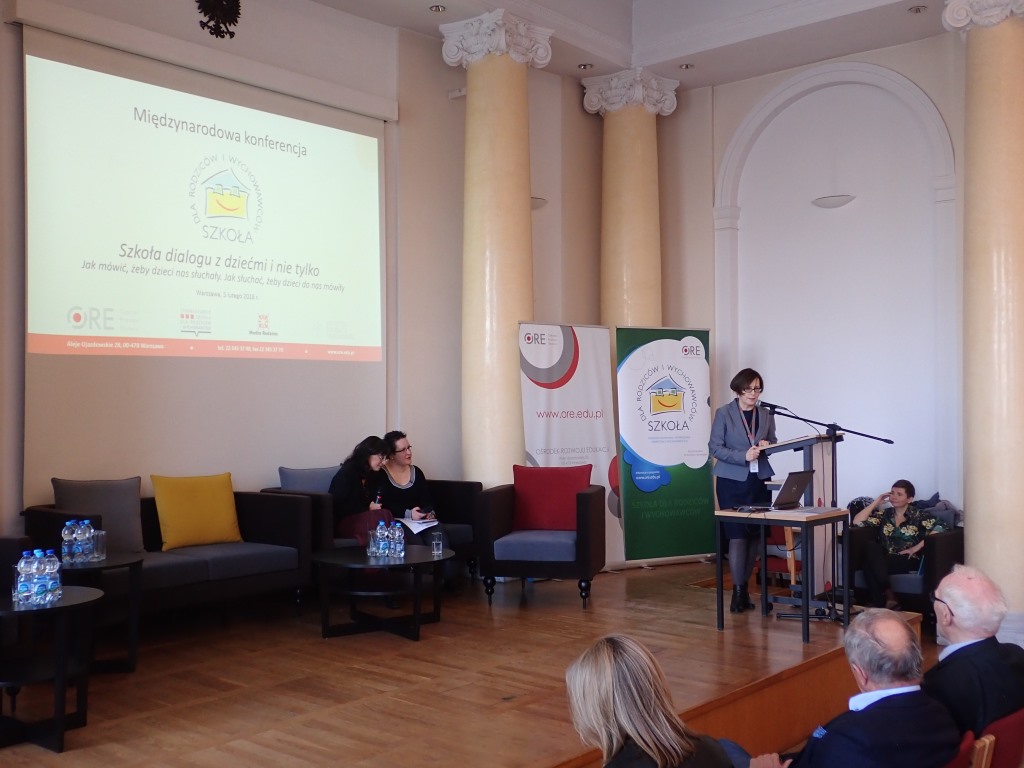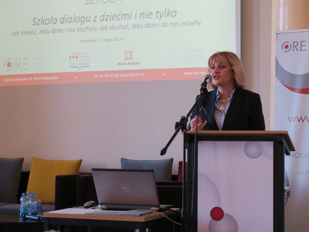 5 lutego 2018 r. odbyła się w Ośrodku Rozwoju Edukacji (ORE) konferencja pod patronatem Ministra Edukacji Narodowej zatytułowana „Szkoła dialogu z dziećmi i nie tylko. Jak mówić, żeby dzieci nas słuchały. Jak słuchać, żeby dzieci do nas mówiły”. Celem konferencji było zaprezentowanie znaczenia dialogu w wychowaniu. Okazją do zorganizowania spotkania był również jubileusz upowszechniania programu „Szkoła dla Rodziców i Wychowawców” (SzdRiW) – 25-lecie w Polsce i 10-lecie na Litwie. Konferencję zainaugurowała dyrektor ORE Jadwiga Mariola Szczypiń, witając gości specjalnych i wszystkich uczestników.