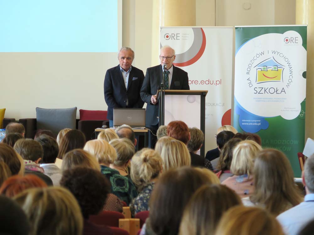 Rolę współpracy szkoły z rodziną oraz znaczenie procesów socjalizacji i wychowania przedstawił profesor zw. dr hab. Marek Konopczyński. Profesor przypomniał, że wychowanie jest procesem zindywidualizowanym, intencjonalnym, opartym na uwewnętrznieniu przez dziecko określonego systemu wartości i światopoglądu. Efekty wychowania są trwałe i trudno odwracalne. Aby wychowanie mogło zaistnieć, obok dziecka muszą być osoby bliskie, ważne w jego życiu. Bliskość emocjonalna łączy się z modelem dialogowania opartym na głębszym porozumieniu, nie na systemie nakazów i zakazów. Szkoła, podobnie jak rodzina, może pełnić funkcję wychowawczą, jednak proces ten musi być przemyślany i zaprojektowany; jest w nim niezbędna bliskość emocjonalna pomiędzy nauczycielem a uczniem, oparta na dialogu i autorytecie nauczyciela. Mitem jest mówienie, że można wychowywać bez wartości – podkreślił profesor Konopczyński.