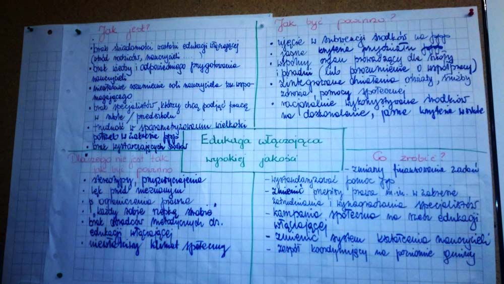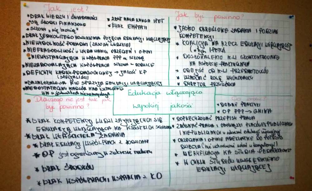Spotkanie było bardzo owocne. Wypracowane przez samorządowców rekomendacje, postulaty i spostrzeżenia dotyczące wyzwań związanych z wdrożeniem edukacji włączającej w polskich szkołach zostały spisane i przekazane przedstawicielom Departamentu Kształcenie Integracyjnego i Wychowania Ministerstwa Edukacji Narodowej, który przekaże je Europejskiej Agencji do spraw Specjalnych Potrzeb i Edukacji Włączającej.