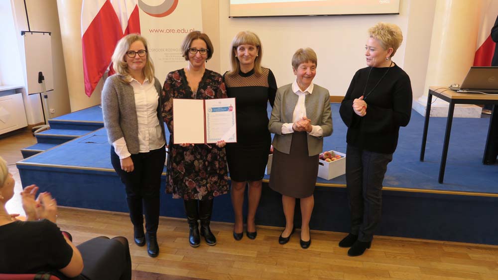 i prof. Barbara Woynarowska. To zaszczytne wyróżnienie otrzymały przedszkola i szkoły z 11 województw: lubelskiego, lubuskiego, łódzkiego, małopolskiego, opolskiego, podkarpackiego, pomorskiego, śląskiego, warmińsko-mazurskiego, wielkopolskiego i zachodniopomorskiego. Dołączyły one do grona 246 placówek, które już posiadają Krajowy Certyfikat.