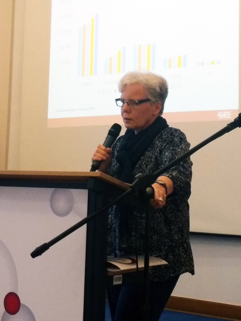 - Małgorzata Kummant – nauczyciel konsultant z Wydziału Specjalnych Potrzeb Edukacyjnych ORE, która przekazała informację o zamiarze tworzenia na bazie placówek kształcenia specjalnego Specjalistycznych Centrów Wspierania Edukacji Włączającej, w ramach konkursu planowanego na początku 2019 r. przez Ministerstwo Edukacji Narodowej.