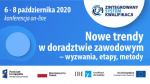 Konferencja „Nowe trendy w doradztwie zawodowym – wyzwania, etapy, metody” odbędzie się w dniach 6–8 października 2020 r. Zogniskowana jest wokół współczesnej problematyki doradztwa zawodowego, także w kontekście zasobów Zintegrowanego Systemu Kwalifikacji. Prelegenci i paneliści podzielą się z uczestnikami konferencji wnioskami płynącymi z praktyki poradoznawczej oraz edukacji. Zaprezentowane zostaną także wyniki badań odnoszące się do różnych wymiarów doradztwa zawodowego.