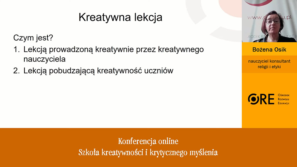 W związku z dużym zainteresowaniem wokół roli kompetencji kluczowych w edukacji, Wydział Rozwoju Kompetencji Społecznych i Obywatelskich zorganizował 18 sierpnia 2021 r. Konferencję „Szkoła Kreatywności i Krytycznego Myślenia – wsparcie nauczycieli w zakresie rozwijania kluczowych kompetencji uczniów wymaganych w procesie uczenia się (w szkole/placówce/na rynku pracy).” Konferencję dedykowano przede wszystkim nauczycielom, pedagogom, wychowawcom oraz skierowano do szerokiego grona pracowników ośrodków doskonalenia nauczycieli, psychologów, doradców metodycznych. Uczestników powitali na Konferencji: Tomasz Madej – Dyrektor ORE, który wygłosił słowo wstępne, Agnieszka Karczewska-Gzik – kierownik WRKSO oraz dr Monika Brenner-Zawierucha – ekspert w WRKSO. Podczas wydarzenia prelegenci wygłosili wykłady na następujące tematy: