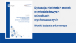 Raport przedstawia wyniki badania ankietowego Wydziału Resocjalizacji i Socjoterapii Ośrodka Rozwoju Edukacji przeprowadzonego wśród dyrektorów młodzieżowych ośrodków wychowawczych (MOW) z całej Polski. Jego celem było zebranie danych na temat sytuacji nieletnich matek przebywających w ośrodkach.