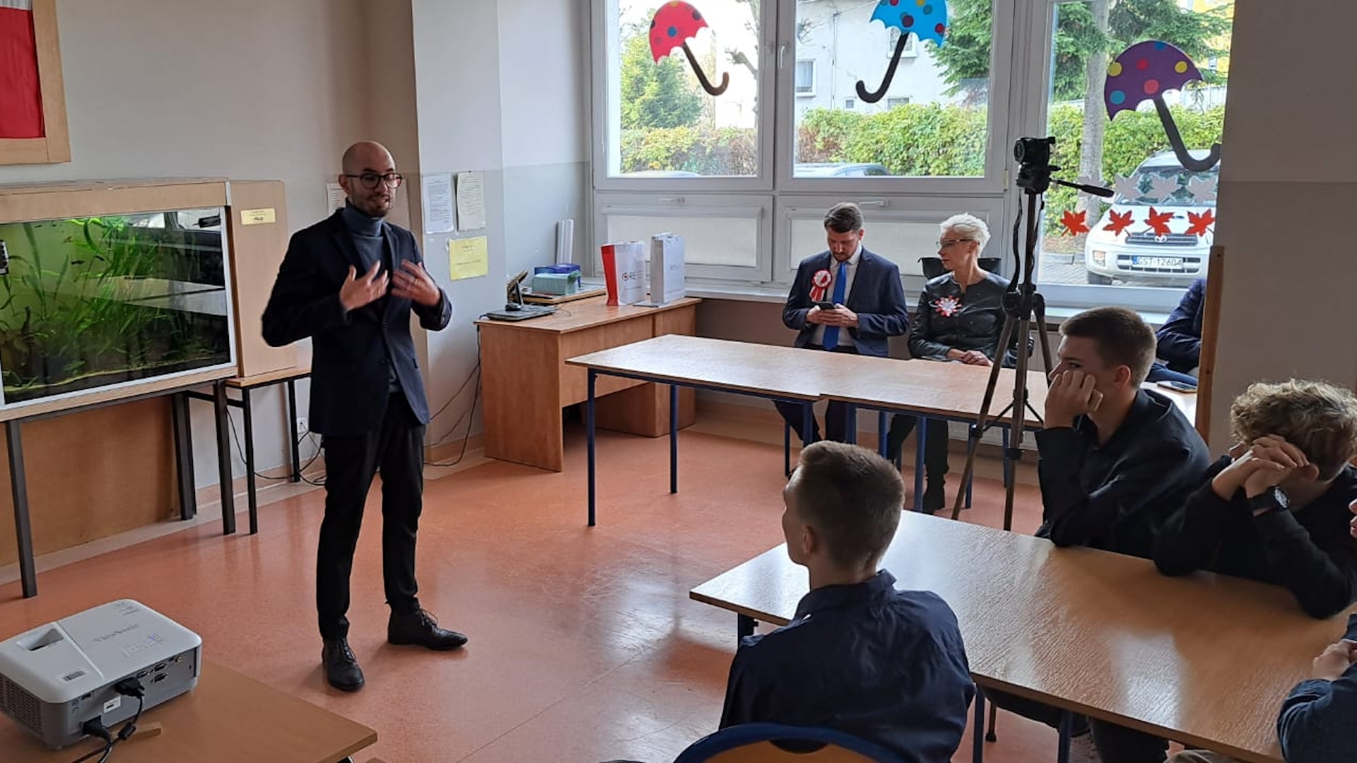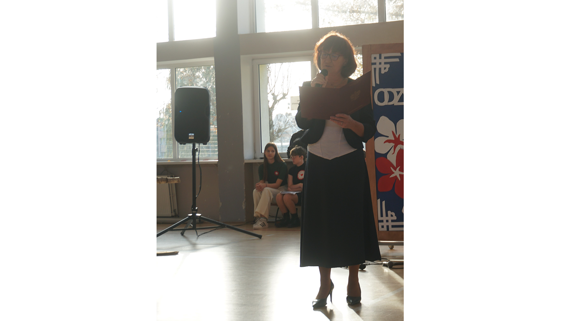 Przybyłych na wydarzenie przywitał Robert Jurek Dyrektor szkoły, a następnie głos zabrał przedstawiciel Ministerstwa Edukacji i Nauki Artur Górecki Dyrektor DKOPP, który odniósł się do Święta Odzyskania Niepodległości i bohaterstwa Polaków, którzy na przestrzeni dziejów walczyli o naszą Wolność. List Małgorzaty Bielang Pomorskiej Kurator Oświaty, na okoliczność 105 Rocznicy Odzyskania Niepodległości, odczytała Joanna Demczyna przedstawiciel PKO.