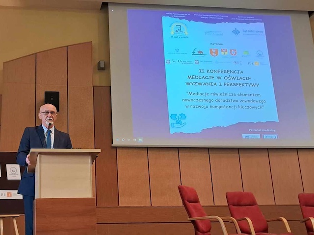Ośrodek Rozwoju Edukacji reprezentował Dyrektor Andrzej Suchenek. Podczas otwarcia konferencji wygłosił przemówienie, w którym podkreślił znaczenie poczucia sprawstwa i decyzyjności wśród dzieci i młodzieży. Zaznaczył jak ważne jest rozwijanie kompetencji kluczowych, w tym umiejętności komunikacyjnych. W wydarzeniu brała czynny udział także Marta Koch-Kozioł, główna specjalistka Wydziału Doradztwa Zawodowego. Wystąpiła z tematem umiejętności mediacyjnych jako elementu sukcesu na rynku pracy. Podkreśliła znaczenie skutecznego rozwiązywania sytuacji konfliktowych z wykorzystaniem mediacji jako kompetencji potrzebnej w pracy zespołowej.