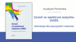 To aktualizacja i rozszerzenie wybranych treści poradnika Uczeń z zespołem Aspergera w szkole ogólnodostępnej, opublikowanego w 2016 r. Zawiera m.in. opis nowych kryteriów diagnostycznych, informacje dotyczące funkcjonowania ucznia ze spektrum autyzmu, wskazówki z zakresu rozwijania wybranych umiejętności kluczowych, a także przeciwdziałania sytuacjom trudnym. Autorka dzieli się doświadczeniem z pracy terapeutycznej z dziećmi i młodzieżą oraz ich rodzinami.