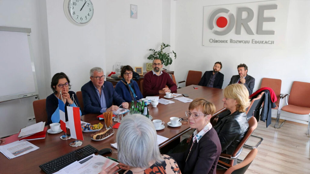 21 października Ośrodek Rozwoju Edukacji gościł przedstawicieli francuskiego systemu edukacji. Wizyta została zorganizowana dzięki współpracy z Instytutem Francuskim i Ambasadą Francji, reprezentowaną przez Philippe’a Morisseta (attaché ds. współpracy edukacyjnej) i Benjamina Girodeau (attaché ds. współpracy językowej).