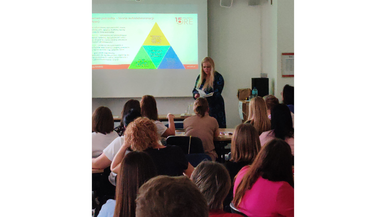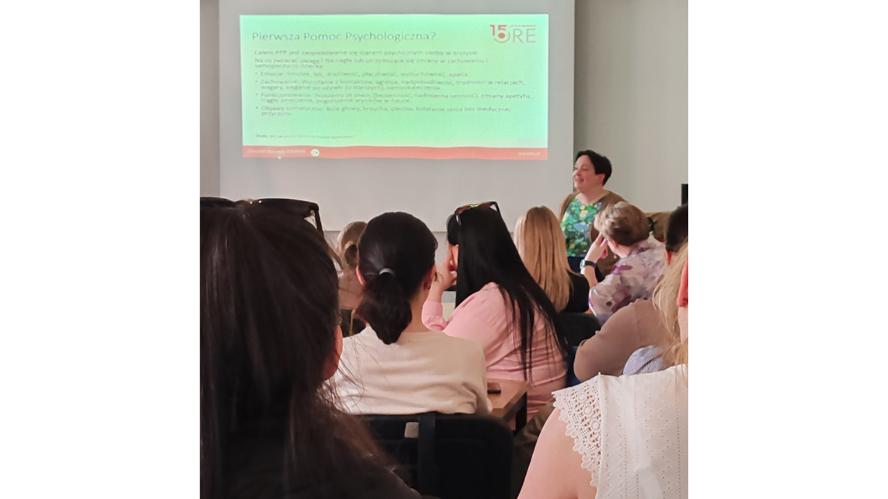 O działaniach wychowawczo-profilaktycznych w pracy wychowawcy świetlicy szkolnej mówiła Jolanta Zawór, nauczyciel konsultant Wydział Promocji Zdrowia, Profilaktyki i Wychowania ORE. Uczestnicy mieli okazję zapoznać się z głównymi strategiami profilaktycznymi oraz propozycjami rekomendowanych programów profilaktycznych. Prowadząca omówiła także podstawy pierwszej pomocy psychologicznej. Stabilny dorosły jest bardzo ważny w procesie rozwoju młodego człowieka. Dbałość o siebie oraz uważność na własne potrzeby i potrzeby innych ludzi jest niezbędna dla prawidłowego funkcjonowania, w tym aktywności społecznej. Warto pamiętać, aby podejmowane w szkole działania wychowawczo-profilaktyczne monitorować i poddawać ewaluacji.