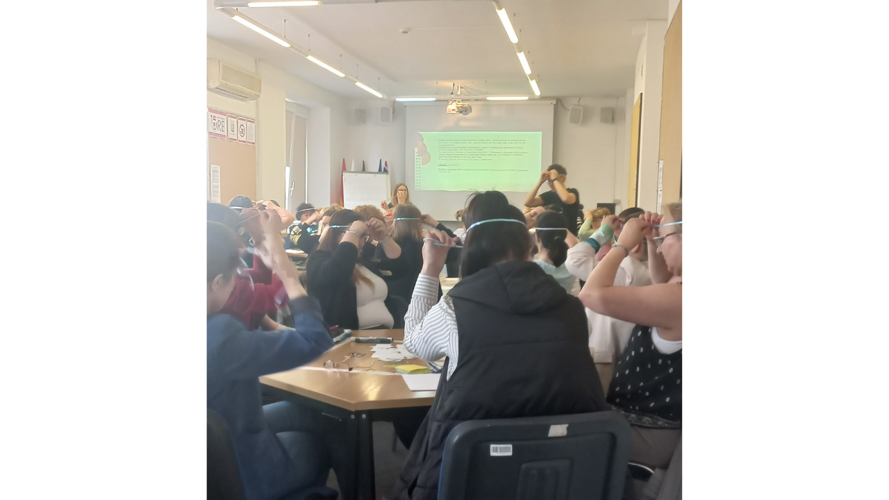 Część „Organizacja zajęć opiekuńczo-wychowawczych w świetlicy i szkole, czyli jak «chaos i bałagan» zmienić w dobrą zabawę” poprowadziła Katarzyna Leśniewska, pedagog specjalny. Zaproponowała kilka sprawdzonych aktywności, gier i zabaw, które można zorganizować podczas zajęć świetlicowych. Uczestnicy szkolenia mieli okazję przetestować skuteczność wybranych ćwiczeń.