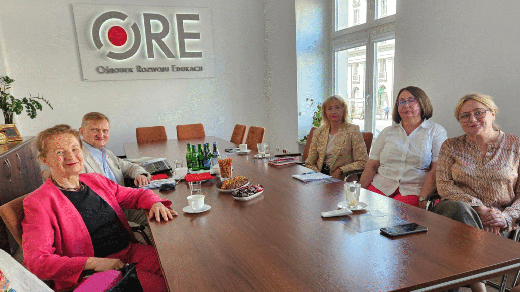 26 czerwca w Ośrodku Rozwoju Edukacji odbyło się spotkanie z dr Mariettą Morawską-Büngeler – autorką książki „Dusza dźwięków. Rozmowy z polskimi kompozytorami”. Uczestniczył w nim także dyrektor Mazowieckiego Samorządowego Centrum Doskonalenia Nauczycieli Jarosław Zaroń. Gości przyjęły wicedyrektor Marzenna Habib, wicedyrektor Małgorzata Szeja oraz Elżbieta Witkowska i Teresa Ciepły z Wydziału Kompetencji Językowych i Współpracy Międzynarodowej. Rozmowa dotyczyła możliwości wykorzystania materiałów zawartych w książce do realizacji przez nauczycieli interdyscyplinarnych projektów edukacyjnych.