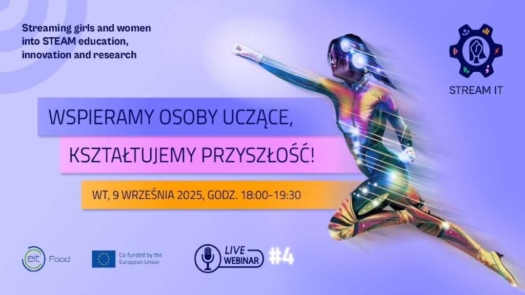 To czwarty webinar z cyklu „STREAM IT – Wspieramy osoby uczące, kształtujemy przyszłość”. Jest organizowany w ramach projektu STREAM IT, finansowanego przez Program Ramowy Unii Europejskiej Horyzont Europa. Projekt ma na celu promocję równości płci w dziedzinach STEAM (nauka, technologia, inżynieria, sztuka i matematyka), w których kobiety nadal pozostają niedostatecznie reprezentowane.