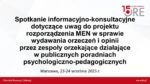 23–24 września w Ośrodku Rozwoju Edukacji odbyło się spotkanie informacyjno-konsultacyjne, które dotyczyło planowanych zmian w systemie pomocy i poradnictwa psychologiczno-pedagogicznego. Zorganizował je Wydział Edukacji Włączającej ORE we współpracy z Ministerstwem Edukacji Narodowej.