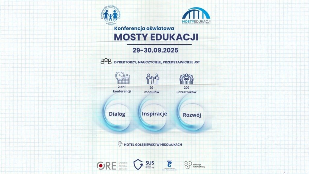 29 i 30 września br. w Mikołajkach odbyła się konferencja poświęcona wyzwaniom i przyszłości polskiej edukacji. Podczas drugiego dnia wydarzenia ekspert merytoryczny w projekcie ORE „Popularyzacja zestawów narzędzi edukacyjnych” – Zbigniew Wiertel – zaprezentował prelekcję „Narzędzia i metody wspierające rozwój kompetencji przyszłości na Zintegrowanej Platformie Edukacyjnej”.