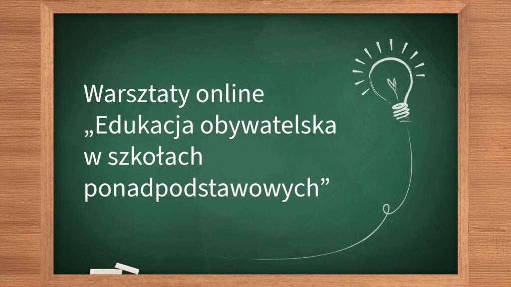 Zapraszamy nauczycieli edukacji obywatelskiej i nauczycieli zainteresowanych wprowadzeniem tematyki obywatelskiej do zajęć dydaktycznych na bezpłatne warsztaty online „Edukacja obywatelska w szkołach ponadpodstawowych”.