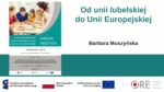 Scenariusz „Od unii lubelskiej do Unii Europejskiej” autorstwa Barbary Muszyńskiej to innowacyjna lekcja realizowana metodą „soft CLIL”, która łączy naukę języka obcego z treścią historyczną i społeczną. Uczniowie poznają historię integracji europejskiej, od unii lubelskiej po współczesną Unię Europejską, jednocześnie rozwijając kompetencje językowe i przedmiotowe. Lekcja promuje aktywne formy pracy, takie jak projekt, debata, burza mózgów, analiza SWOT i praca grupowa, co sprzyja realizacji celów programowych z historii, wiedzy o społeczeństwie i języka obcego. Ten scenariusz może być również wykorzystany do pracy na lekcjach niejęzykowych.
