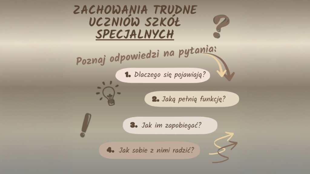 - Trudne zachowania uczniów z niepełnosprawnością intelektualną – jak sobie z nimi radzić na poziomie szkoły.