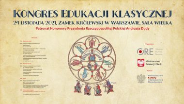 Minister Edukacji i Nauki oraz Dyrektor Ośrodka Rozwoju Edukacji mają zaszczyt zaprosić wszystkich dyrektorów szkół, nauczycieli przedmiotów humanistycznych oraz edukatorów i konsultantów na Kongres Edukacji Klasycznej pod Patronatem Honorowym Prezydenta Rzeczypospolitej Polskiej Andrzeja Dudy, który odbędzie się 24 listopada 2021 r. na Zamku Królewskim w Warszawie.