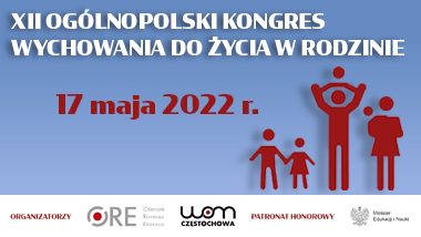 Dyrektor Ośrodka Rozwoju Edukacji w Warszawie wraz z Wydziałem Rozwoju Kompetencji Społecznych i Obywatelskich ORE zapraszają na XII Ogólnopolski Kongres Wychowania do Życia w Rodzinie. Tegoroczne wydarzenie „Szkoła – rodzinie. Wspieranie wychowawczej funkcji rodziny” odbędzie się 17 maja 2022 r. w Sulejówku i jest skierowane do nauczycieli, dyrektorów szkół oraz samorządowców, poszukujących nowoczesnych, edukacyjnych form wsparcia wychowawczej funkcji rodziny. Organizacja XII edycji Kongresu odbywa się we współpracy […]