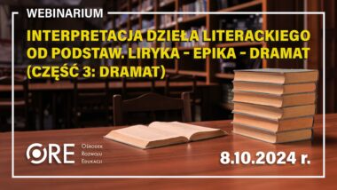 Wydział Kształcenia Ogólnego i Kompetencji Cyfrowych Ośrodka Rozwoju Edukacji w Warszawie ma przyjemność zaprosić Państwa na trzecią część webinarium Interpretacja dzieła literackiego od podstaw. Liryka – epika – dramat. Tym razem nasza uwaga skupi się na dramacie. W trakcie szkolenia omówione zostaną fundamentalne zasady analizy dzieła dramatycznego w szkole, z uwzględnieniem kwestii takich, jak „edukacja dramatyczna” jako sposób na wdrożenie ucznia w życie kulturalne, performatyka czy rola. Webinarium […]