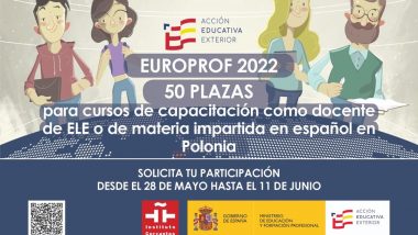 Wspólnie z Biurem Radcy ds. Edukacji Ambasady Hiszpanii w Polsce zapraszamy nauczycieli pracujących w oddziałach dwujęzycznych z językiem hiszpańskim, zainteresowanych nauczaniem w języku hiszpańskim, do udziału w programie EUROPROF. Mile widziani są również nauczyciele innych języków obcych zainteresowani nauczaniem języka hiszpańskiego.